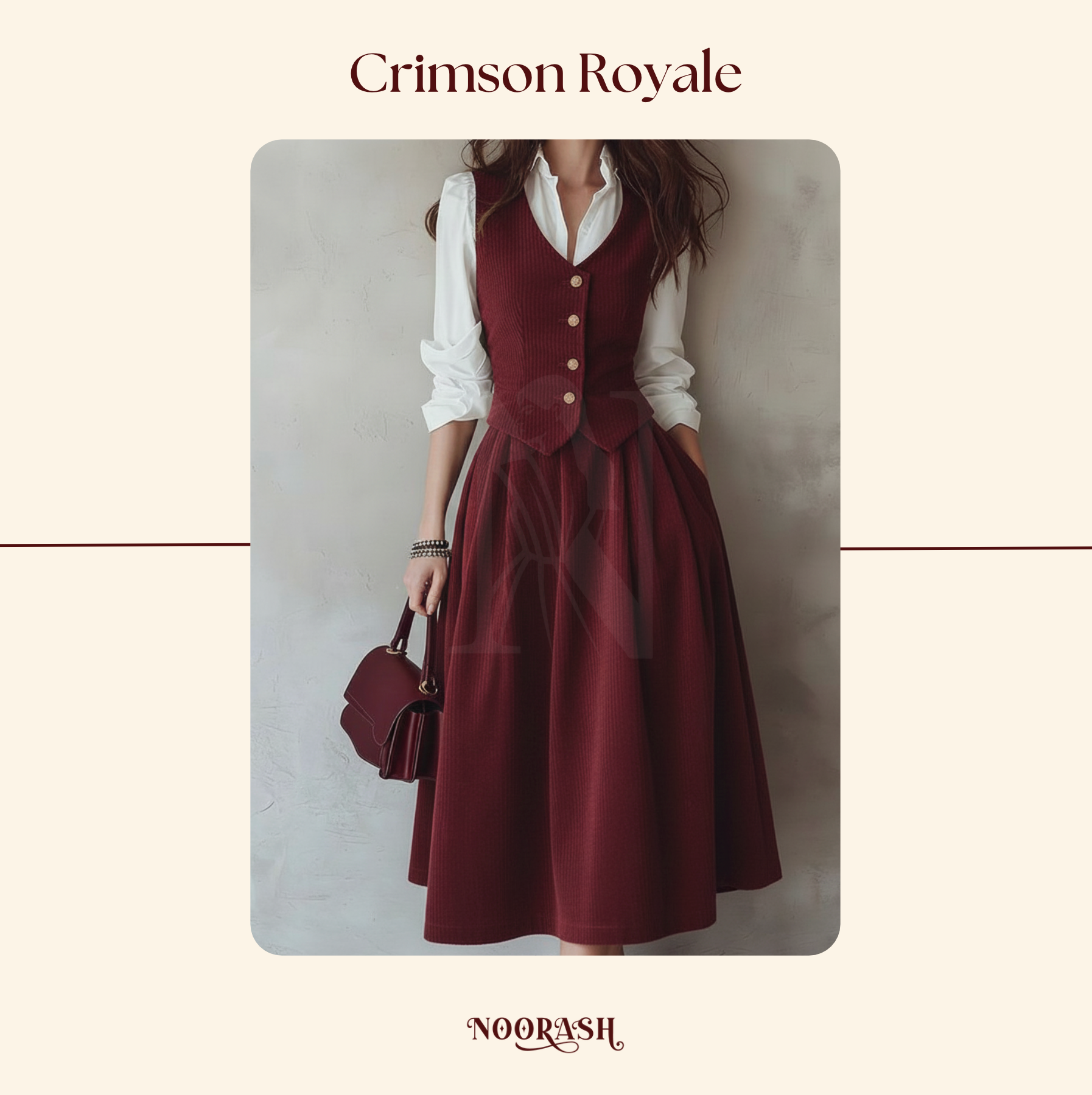 Crimson Royale - Chic Buttoned Vest-Style Fit & Flare Dress