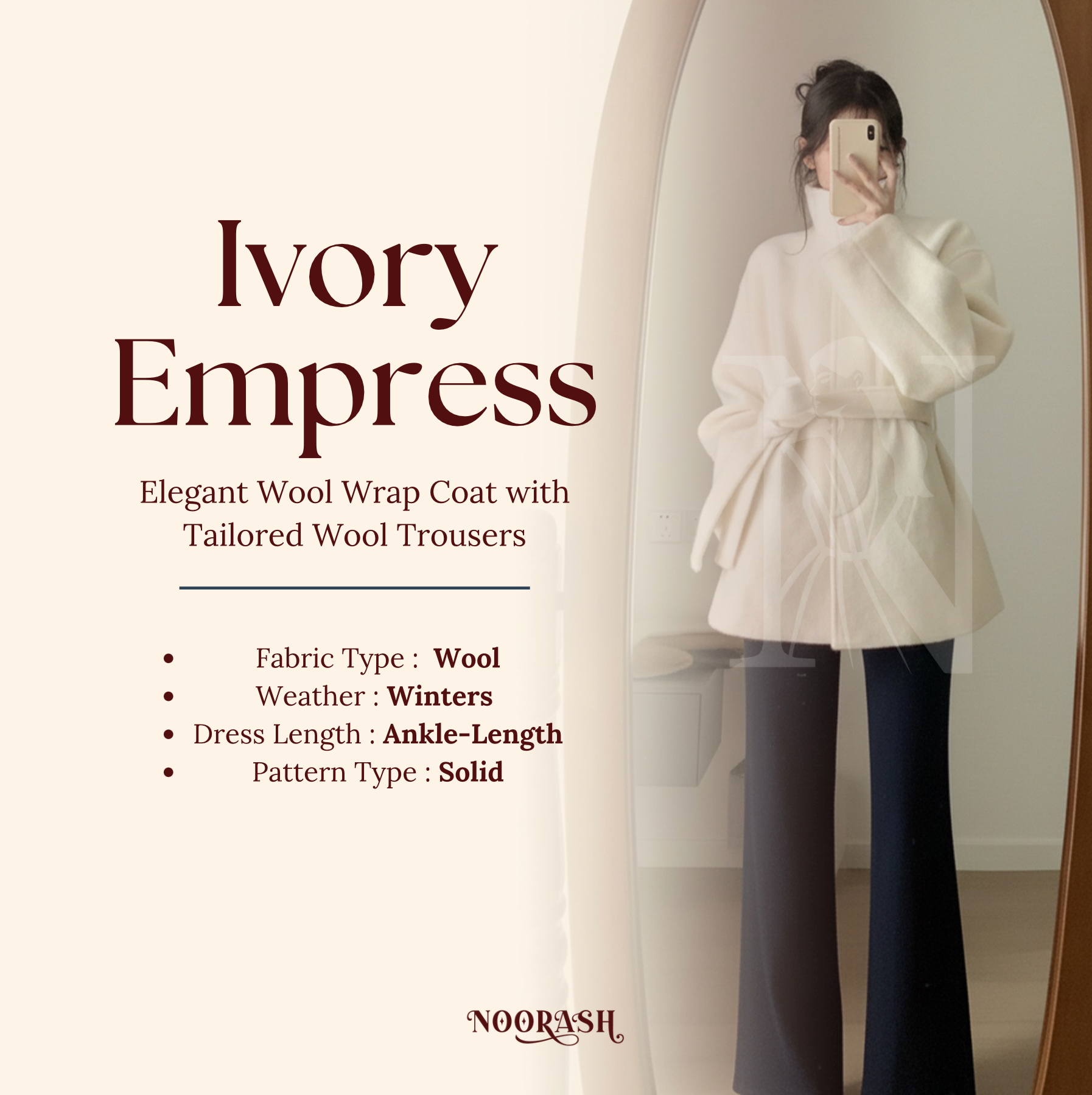Ivory Empress - Elegant Wool Wrap Coat with Tailored Wool Trousers
